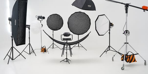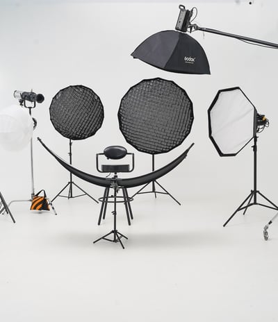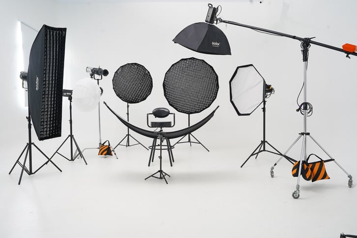 Fully equipped studio for all your photography needs, including lighting and gear.